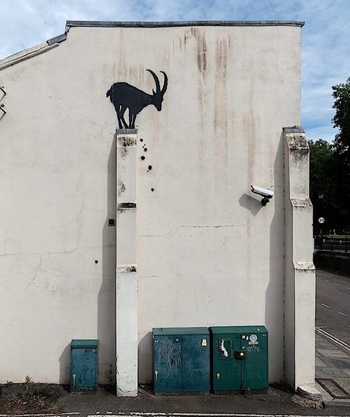 “Cum a ajuns Banksy să picteze despre România și despre cel mai mare mega-mall care va fi construit în țara noastră …. Numeroaselor intepretări apărute deja, le-aș mai putea adăuga una, potrivit căreia ar fi vorba de caprele negre din Carpații României, a căror împușcare e vândută ca ”activitate sprotivă și de relaxare” pentru unii mândri vânători, de pe la noi și de pretutindeni. Dar căutând diferite interpretări ale celui mai recent desen al lui Banksy, am dat peste unul, doar puțin mai vechi, din primăvară, de pe peretele unei clădiri de lângă Finsbury Park din Londra. Iar ăsta e clar că are treabă cu o problemă universală (că de-asta e genial Banksy), inclusiv din România. Pe calcanul clădirii, în spatele unui copac toaletat barbar (cunoașteți modelul?), artistul a vopsit peretele cu verde suflat de un muncitor cu pompa. ….Da, desenul lui Banksy este și despre simulările frumos colorate ale mega-mallului Iulius Carbochim, care ar urma să fie construit la Cluj-Napoca, care se pretinde a fi unul verde. Asta în condițiile în care vrea să obțină derogare de la obligativitatea asigurării a 30% spațiu verde pe sol natural, înlocuind cel puțin o treime din el cu gazon plantat peste o uriașă parcare și cu arbori în ghivece. Între verdele copacului lui Banksy și cel din simulările mega-mallului Iulius Carbochim, nu e vreo diferență esențială. ….” Integral: https://www.romaniacurata.ro